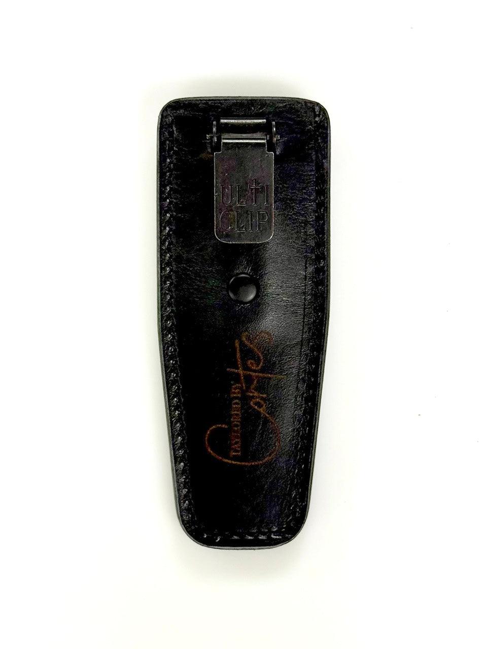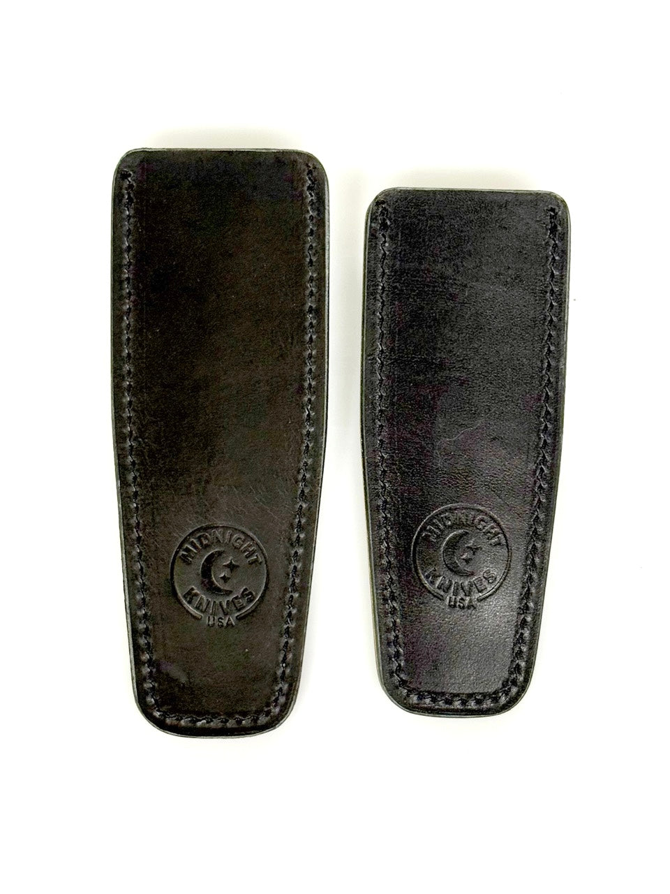 These custom leather pocket sheaths feature an integrated Ulticlip. The Ulticlip makes taking your knife in an out simple. They are made from premium USA leather by the talented Taylor Cortes (@Tayloredbycortes). Each sheath has a custom fit that will not only protect your knife, but look better over time as it lives in your pocket. These are a game changer for in pocket carry. Embossed Mid might Knives logo on the front and laser Taylored by Cortes logo on the back.